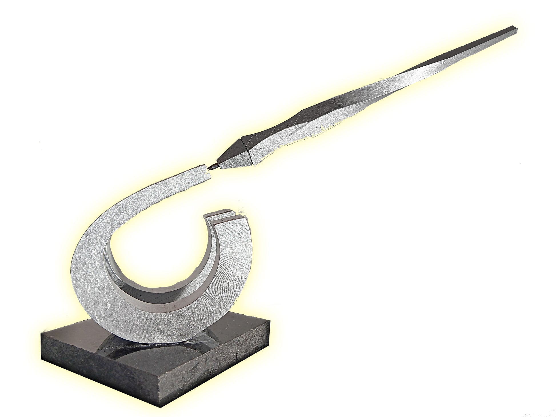 Graviton ™ by Gravitypen ® - Featuring above horizon technology exclusive to Gravity pen ®. This pen rests at a graceful angle in mid air with no encumbering cradle structure below it. Based on our cutting edge patent pending technology, this functional work of art is guaranteed to turn heads.
